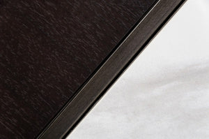 This coffee table is a chic, minimalist dream. Perfect to accent your living space and hold your magazines, remotes, and of course coffee. The rose gold accent will compliment any sectional or couch you have. Since this coffee table has a darker palette, it will pair well with darker furniture in your home.