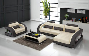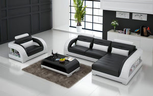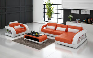 The Lacus Mini Modern Leather Sectional with Chaise is handmade with genuine Italian or bonded leather. Choose your preferred color leather from a selection of 10 distinct colors. This leather sectional features multiple built in storage spaces big enough to display books or decorative items. Each top headrest is adjustable. This modern sectional is a stylish and chic addition to your living space. To complete the look of your living space we recommend adding the armless chair and coffee table. Cup holders and USB ports are recommended for larger families to optimize maximum enjoyment. An additional bed function makes a great movie night with the family or space for unexpected guests. With the generous size of this sectional, family and friends will gladly socialize in comfort.